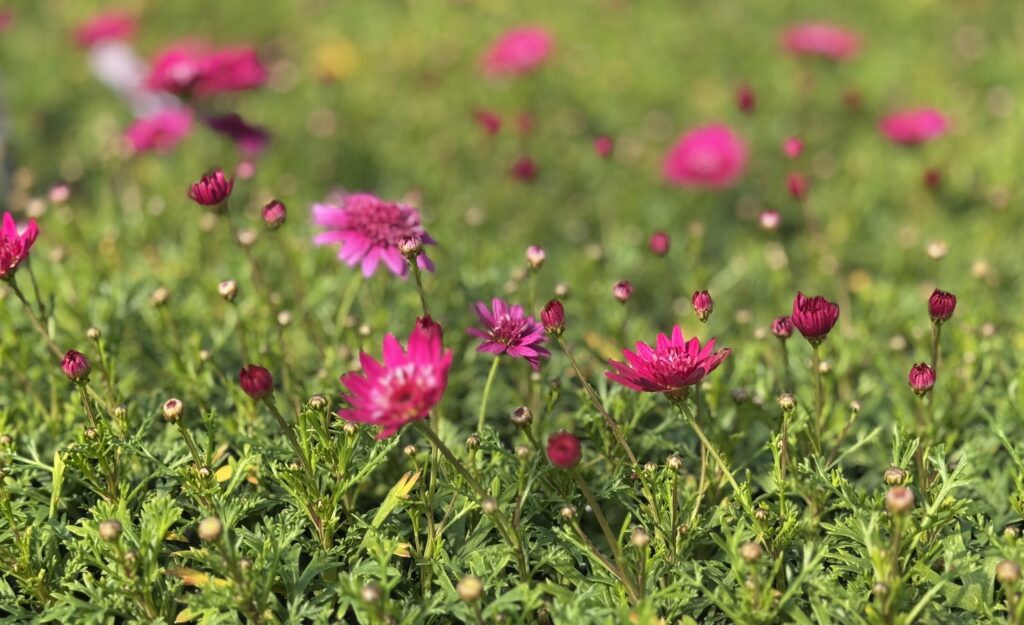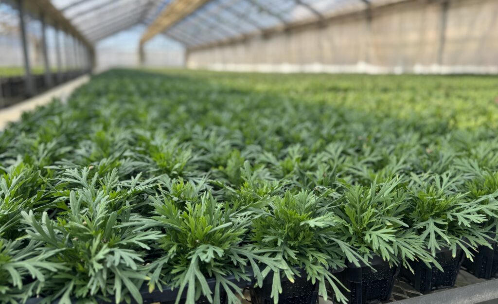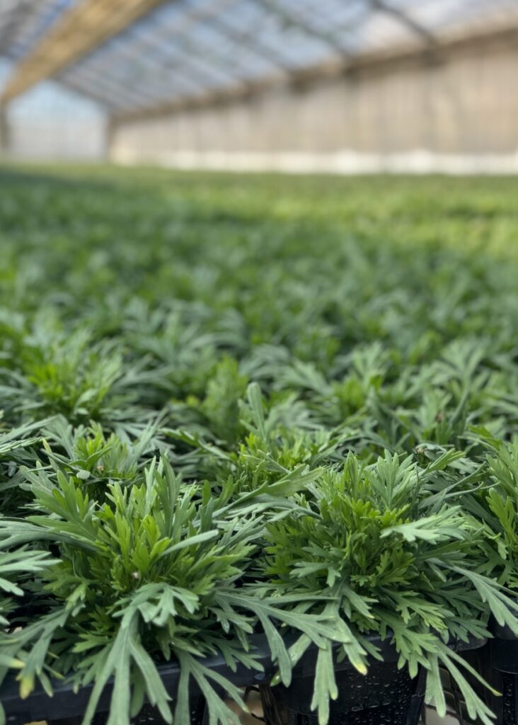 約10種類の個性豊かなポット苗を育てています。花だけでなく、葉っぱの色や形も様々です。様々な色を取り揃えています。